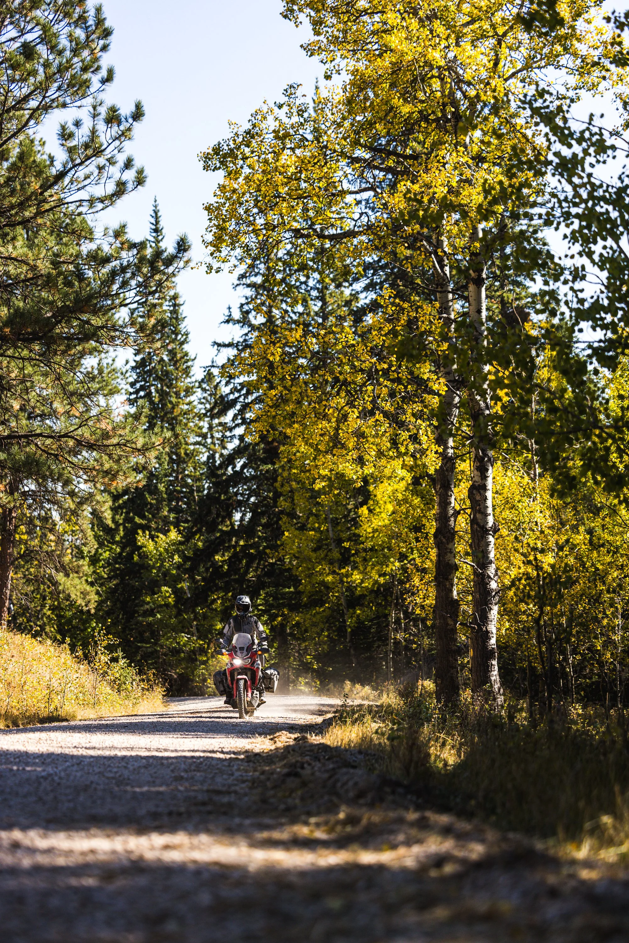 We passed through the Oglala National Grasslands as the sun started to set. We entered South Dakota under the night sky and rode an expected section of dirt all the way into Edgemont. We grabbed a quick burger at the Yesway convenience store in Edgemont and climbed into the Black Hills National Forest in search of dispersed camping. Jerod got stuck on a loose climb, and I dismounted to give him a push. It was around 10 p.m., and everything outside beyond headlights was pitch black. When I remounted and started the climb, I got off center and dropped 600 pounds worth of motorcycle. Jerod helped me upright my steed, and we proceeded to our camp along Red Canyon. It was midnight before I crawled into my sleeping bag, exhausted but elated for what the morning light would reveal.